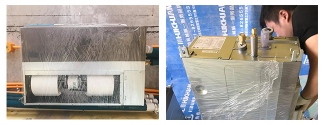 因中央空調(diào)是在裝修前期的安裝,包裹好后面施工產(chǎn)生的揚(yáng)塵不會進(jìn)入到機(jī)器里,從而避免揚(yáng)塵進(jìn)入影響使用。
